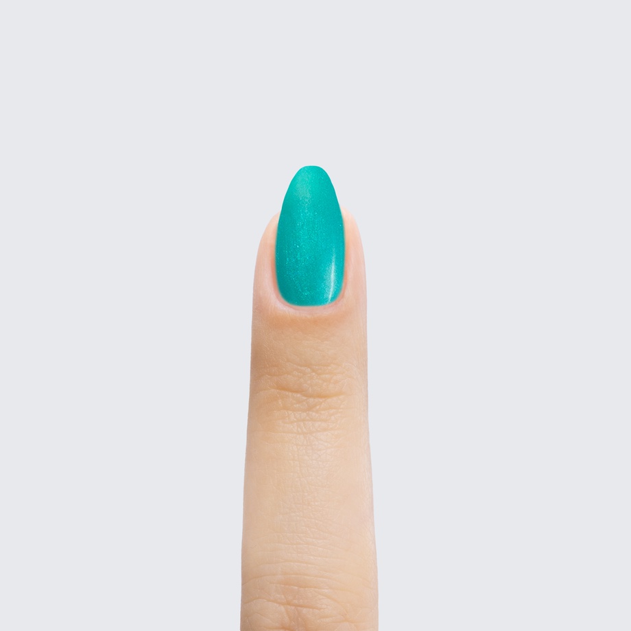 Green with blue base. Medium. Bright. Pearl finish. 1 coat sheer, 2+ coats opaque. Cool undertone.